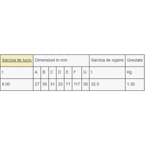 Conector pentru chingi, COS240J - sarcina nominala 8.2t