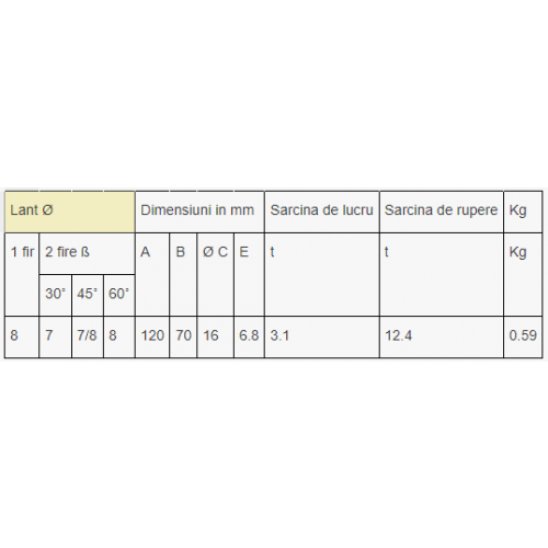 Inel de ridicare MS 16 - sarcina nominala 3.1t, diametru lant 8mm pentru dispozitive cu 1-2 brate