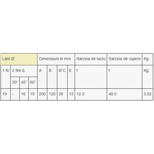 Inel de ridicare MS 28 - sarcina nominala 12t, diametru lant 20mm pentru dispozitive cu 1-2 brate