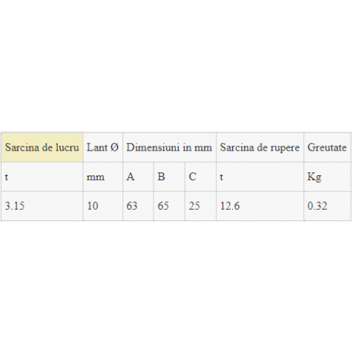 Piesa de legatura lant inel, MJ 10 - sarcina nominala 3.2t, diametru lant 10mm