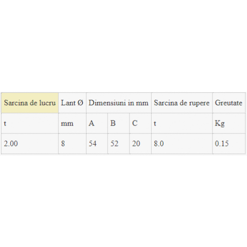 Piesa de legatura lant inel, MJ 8 - sarcina nominala 2t, diametru lant 8mm