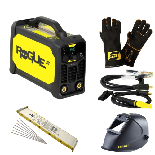 Pachet sudura MMA ESAB Rogue 151iP cu masca sudura, manusi sudor, electrozi 3.2